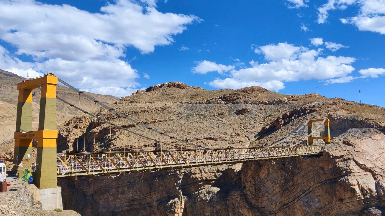 We decided to take the scenic route via Kibber Village and Chicham Bridge once again. This time, bathed in the soft morning light, the landscape looked even more magical. The Chicham Bridge, one of the highest suspension bridges in Asia, hung majestically over a deep gorge, linking two mountain cliffs. Standing on the bridge, with the fierce winds and the dizzying drop below, was nothing short of thrilling.
